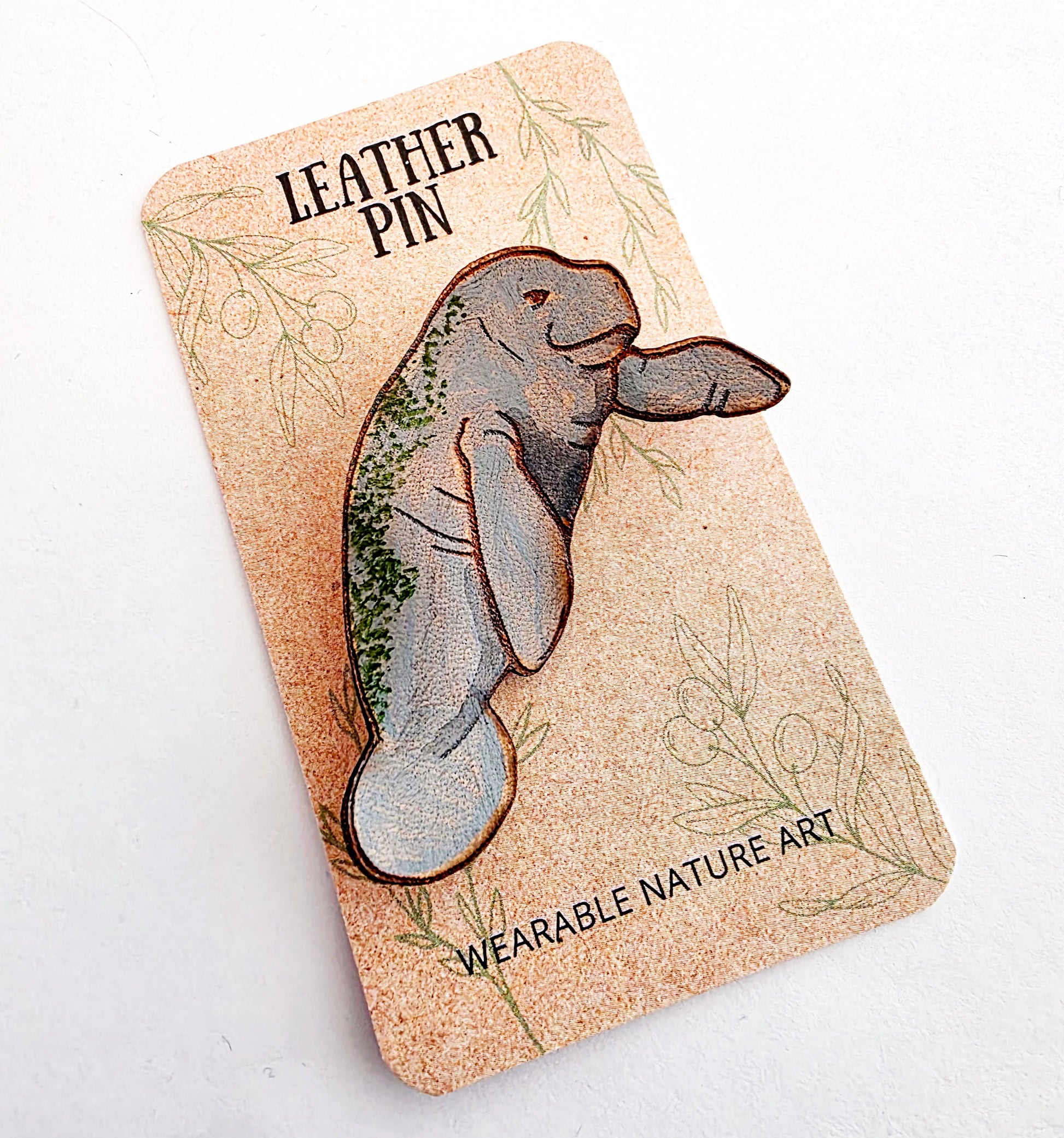 Manatee Leather Nature Art Marine Animal Pin