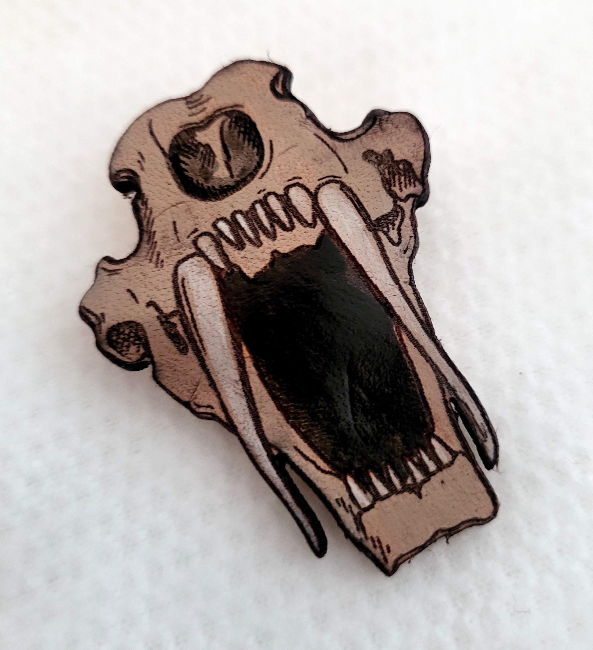 Sabertoothed Cat Skull Leather Nature Art Animal Paleontology Pin